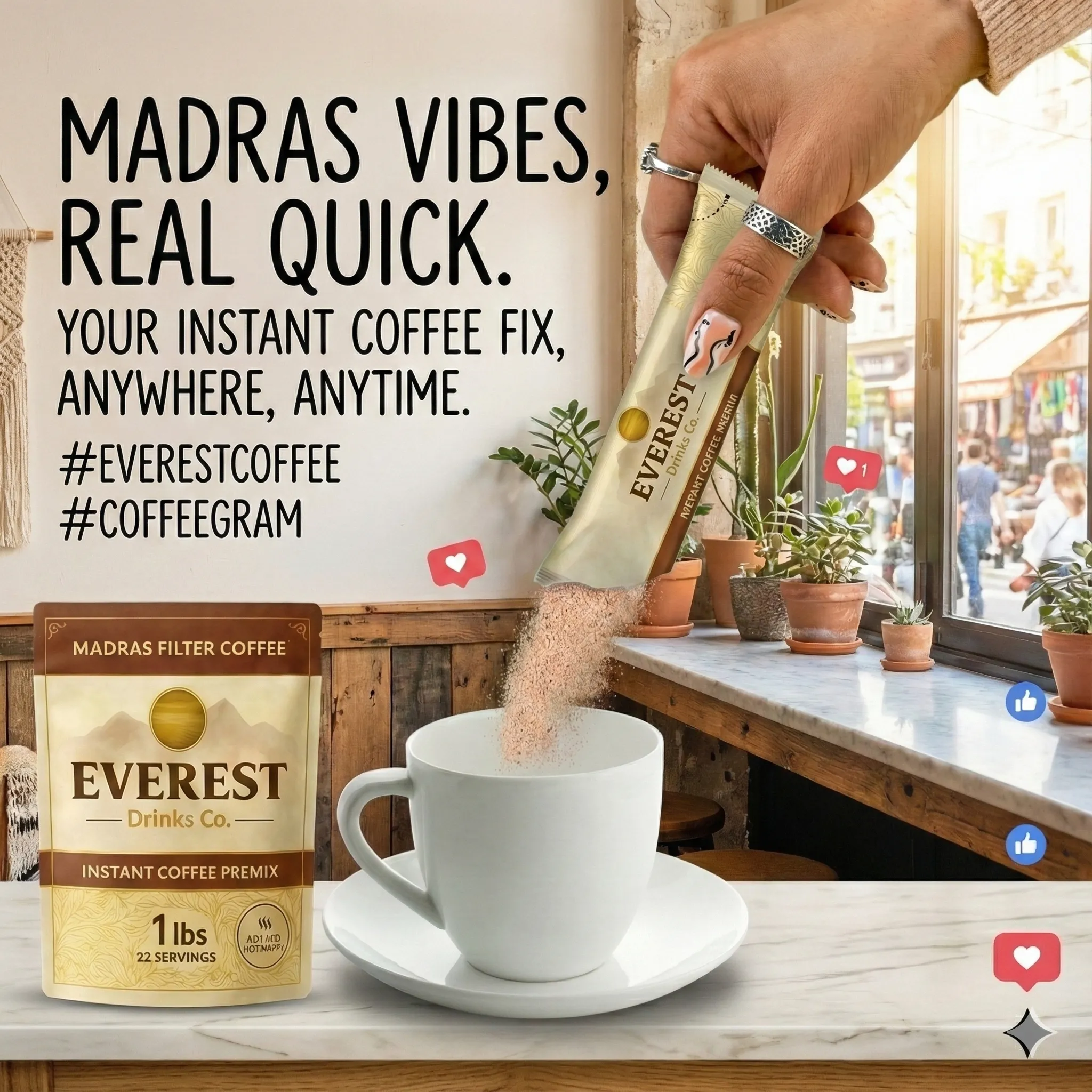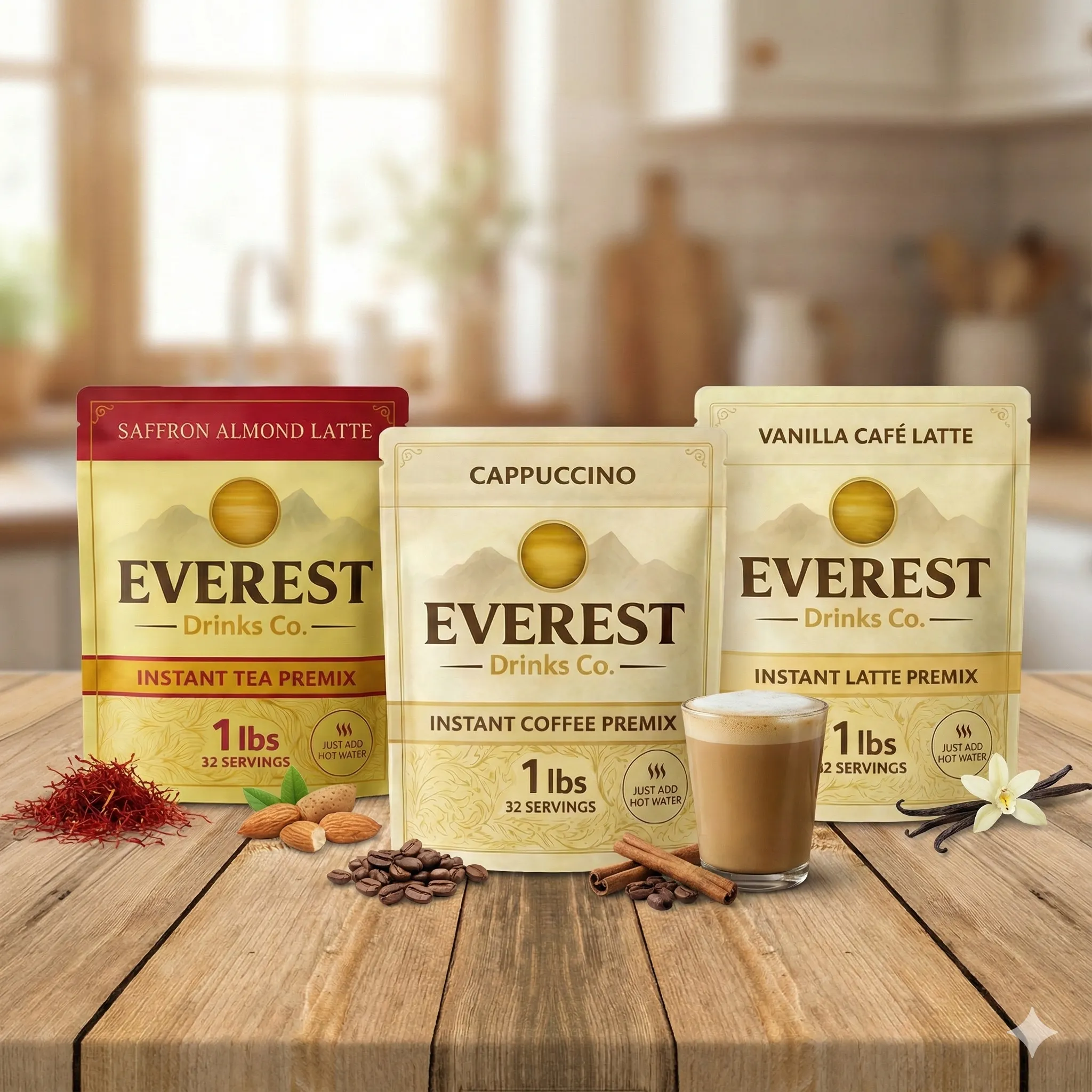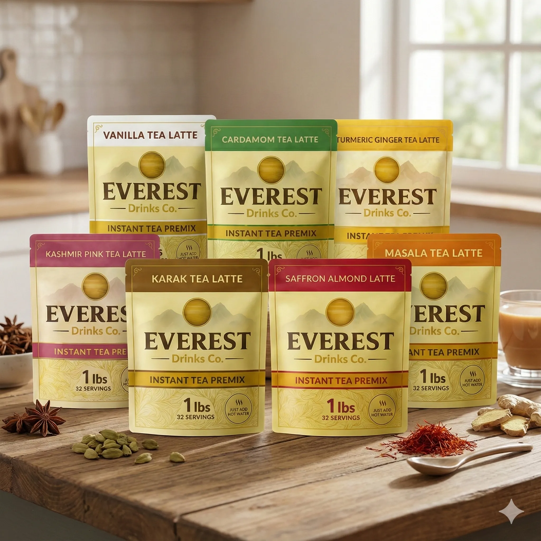 Cafe-style chai in seconds. Single-serve sachets for home, travel or office. Premium taste, clean ingredients, no hassle.